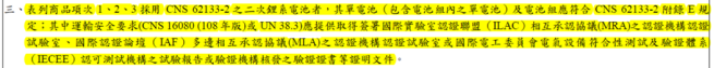 6.後續CNS62133-2標準, Pack and Cell皆須提供UN38.3測試報告(可接受以下說明之合格實驗室核發的測試報告)